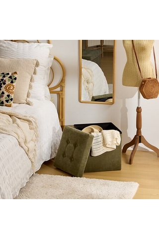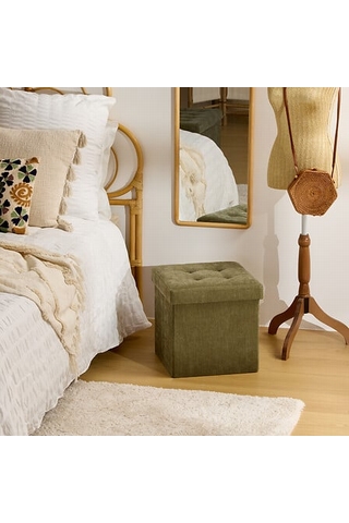 Pouf capitonné kaki